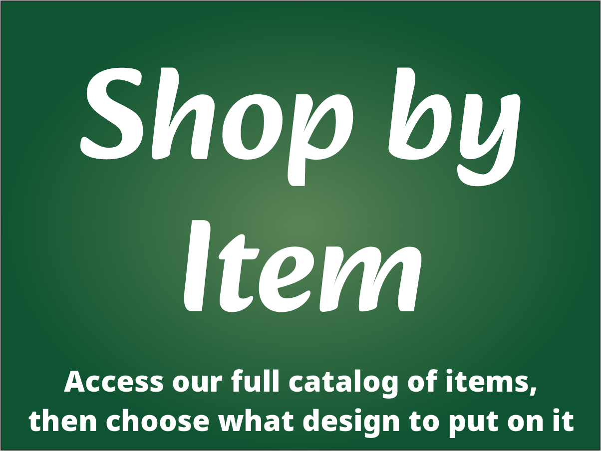 Have an idea? Our in-house graphics designers can help bring your ideas to life or we can use your own design if it is provided in a print ready file. We can accommodate printing just one item to large bulk orders with thousands of items.